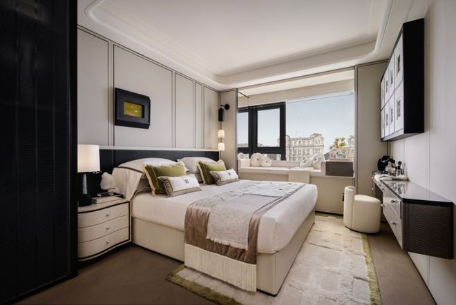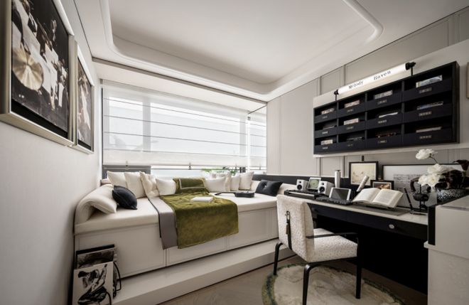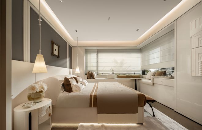 :约9米的宽幕贯通厅连接着超大的阳台,外滩天幕的繁华景色在这里成为日常;南向次卧为孩子的成长预留了足够的想象空间;北向房间面宽约 3.1米、进深约 4.15米(含 约60cm 宽景转角飘窗)的空间,彻底跳脱 “次卧即局促” 的刻板印象。无论是作为长辈房,还是书房,都能享受到与主卧同质的舒适 。