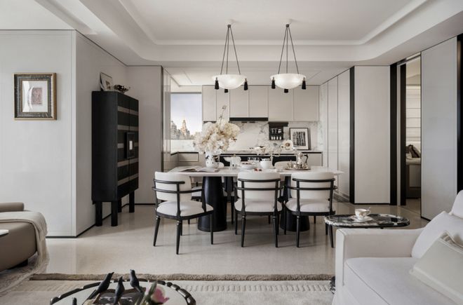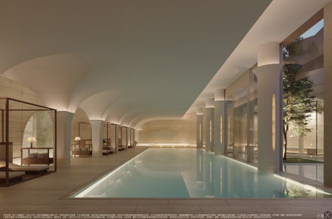 而说到社交,就不得不提那个让人过目不忘的下沉式泳池会所。如何定义顶豪的社交场?外滩瑞府特邀曾为汤臣一品操刀的渡边智昭,给出了答案。他以上海华尔道夫酒店为灵感,打造了一座兼具经典秩序与松弛度假感的社交会所。最令人惊叹的,是其独创的室内外双幕水剧场设计,彻底打破了空间的界限。全天候泳池的粼粼波光,与庭院的四季风景在此交融,这里不仅是全家人的度假胜地,更是重塑外滩社交引力场的全新地标。