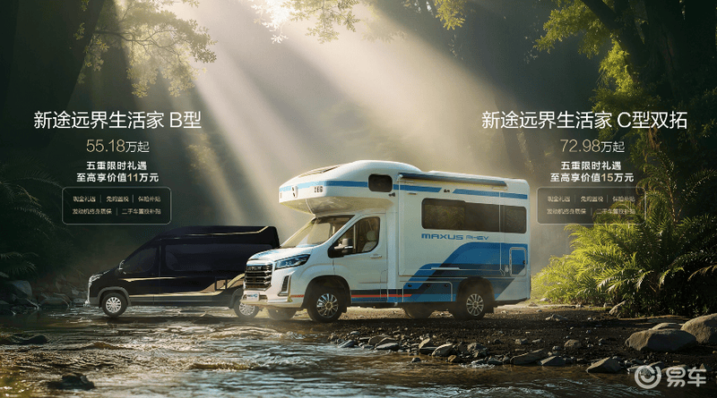 易车讯 在日前开幕的2025成都车展上,上汽大通MAXUS房车家族携生活家、探索家、2026款旅行家露营版三款新车亮相,并公布三款车型售价。新途远界生活家C型双拓版价格72.98万元起,B型价格55.18万元起;探索家星际指导价41.88万元起,限时一口价32.98万起;2026款旅行家露营版指导价13.98万元起,限时一口价11.98万元起。成都车展期间下定还可享专属礼遇。